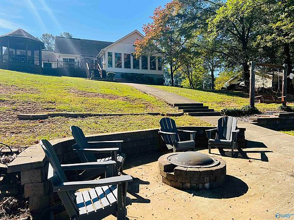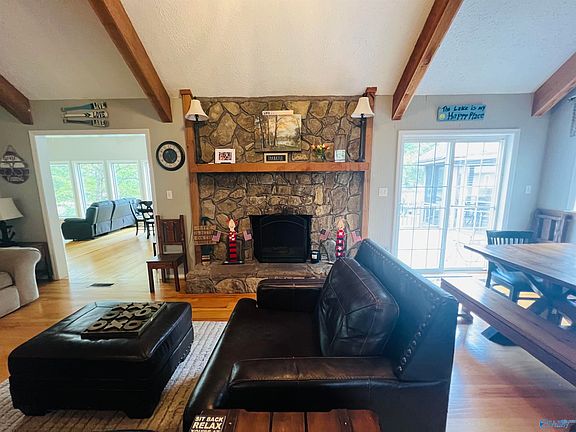 Beautiful lake home with gorgeous lake view on year-round deep water cove at Weiss Lake! Located in the desirable Embos Island neighborhood. This 3BR/2BA two-story home offers a 2-car garage with workshop space and storage cellar. This beautiful lake home features an open spacious floor plan and a family room with large windows that showcase the breathtaking lake and mountain views. Hardwood floors, like-new stainless-steel appliances, and a brand-new HVAC providing comfort and efficiency. Step outside to enjoy an easy walk to the private dock w/power, a boat lift, concrete seawall, community boat ramp, gazebo, swing and fire pit area that is perfect for entertaining!