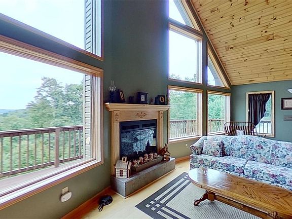 Your dream home checklist may have met it's match! This masterful floor plan blends the appeal of mountain chalet w/ 3levels of pure enjoyment. Master en suite loft offers panoramic sunset view that will mesmerize. Bedrooms on all 3 levels. Den that doubles as spare bedroom Hardwood floors reflect woodland beauty just beyond the floor to ceiling windows.That's only the beginning Home office? Viastat & Hughes Net Satellite internet.Workshop ?Guest suite? Yes ! ++ a huge 2 car garage built to thrill the most discerning car enthusiasts. 2 br guest suite has full kitchen & all amenities+ an expansive front porch to enjoy the serene Manicured back lawn Easy access to the main house or down to the garage & parking 15+ acres of privacy for off road fun, snowmobiles, hiking, hosting the whole crew for a summer bbq or just watching the stars on the deck Close to main highways but tucked away on Fall Road waiting to be discovered. Everything you wanted Nothing compromised CLEAN & GREEN