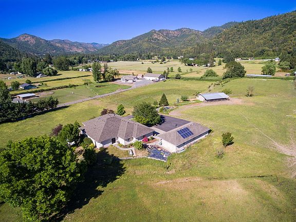 Reduced Price/Motivated Seller!!! Views for Days! Custom 4477 Sq Ft Perfectly located between Medford and Grants Pass with quick access to I-5. Fully usable 9.75 Irrigated Ranch/Farm Acres, Elevator, Custom Belgian Radiant Fire place, Vaulted Ceilings, Fully paved Driveway, 2 Car Attached Garage, 2 car Detached Garage plus Shop, Firewood storage, Plus Extra shop storage, Farm equipment Storage, Outlets in the eaves for Christmas lighting, automatic sprinklers and drip system, Fenced and cross fenced. 10 head of cattle currently are grazing the land. full hot wire fenced installed. Barn, Geothermal circulated through heat pump, Wheel Chair accessible throughout, Lower level built with structural Insulated Panels(SIP)two 200 amp electrical panels (upper and lower), Automatic Driveway Gate, Warm-board Radiant Floor Heating, Solar that feeds back into utility Grid. Could be two family set up. Hurry! Motivated Seller says... Sell it!