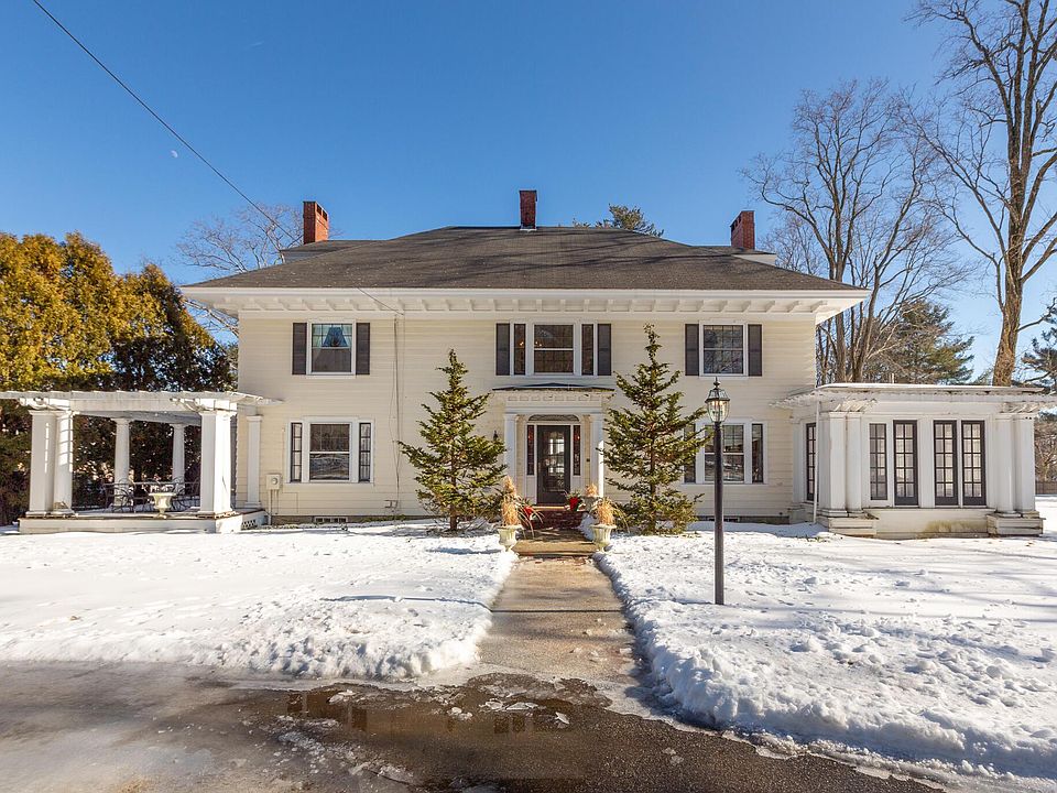 A Falmouth Foreside icon, thoughtfully renovated, 20th century colonial home honors the elegant style of it's time while incorporating fresh modern appointments. A versatile first floor plan features a large, open kitchen with a spacious island and eat-in area. Sun filled three season room with fireplace, a grand living room with fireplace, a sitting room with a wood burning fireplace. A formal dining room with French doors leading out to a Pergola covered deck. This home blends charming living spaces with wonderful areas for entertaining either inside, or outdoors on the veranda. The second floor boasts an elegant primary suite with a fireplace, a spacious walk-in closet and renovated bathroom. Additionally the fourth and fifth bedrooms are located on the third floor along with an artist's studio and full bathroom. This elegant, lovingly cared for estate has beautiful grounds with a circular driveway. Plus it has deeded water rights to Casco Bay and is conveniently located only fifteen minutes away from downtown Portland.