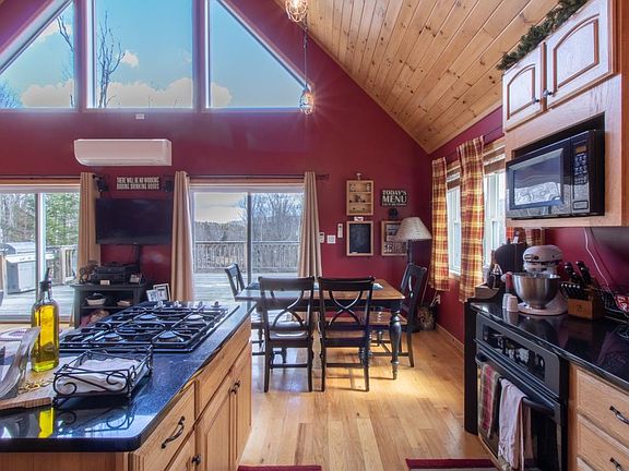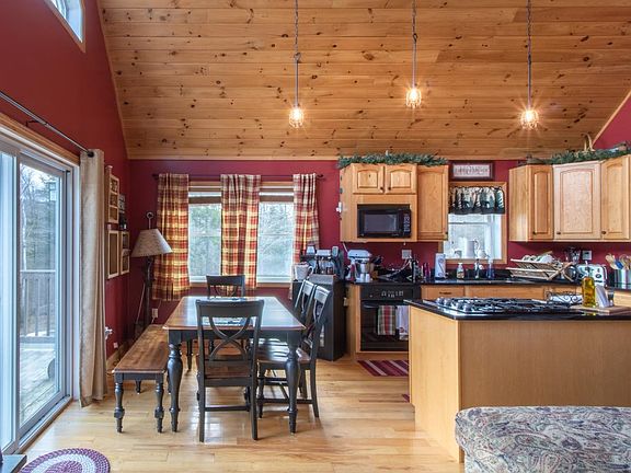 Set on 10 mostly wooded acres on a dead-end road, this log-sided home is a great option for those looking for an escape from life in the city. You enter through the basement level, which is divided into a garage with laundry area and a large family room, with a built-in bench that offers storage, and a 3/4 bath. Up the stairs on the main level the primary bedroom and a smaller bedroom are to the right with a shared full bath. To the left is the kitchen, dining and living area. The L-shaped kitchen features a center island with gas cooktop, oak cabinets, and dark granite counters. There are two sets of sliders with a trio of windows above letting in lots of natural light, and the glass-front pellet stove adds warmth and ambiance in cooler months. The sliders lead out to a 27'8"x19'8" deck, where you’ll want to spend endless hours listening to the sounds of nature and perhaps spotting some wildlife. Recreation options are many, with the VAST & VASA trails crossing the bottom of the driveway, plus Seymour Lake, Island Pond and Spectacle Pond are all nearby for swimming, boating, and fishing. Drive 30 minutes to Burke Mountain and Kingdom Trails for skiing and mountain biking. Shops and several restaurants are 7 minutes away in Brighton or drive 15 miles to the Derby/Newport area for more shopping and dining options.