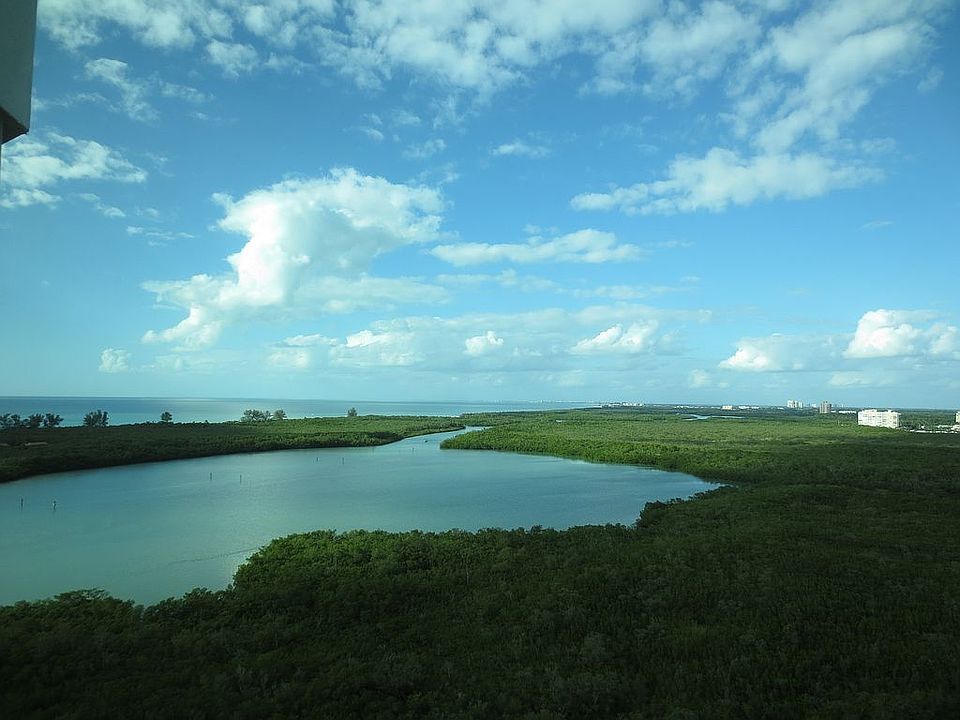 Unsurpassed views of the Bay and the Gulf. This stunning residence is model perfect with exquisite upgrades including built-ins, moulding, travertine floors, upscale kitchen appliances and more. The elegant decor creates an air of magnificence as you enter into this 3 bedroom, 3.5 bath plus den condominium. This residence offers a membership to the Floridian Beach Club with a beautiful pool, chair, towel and umbrella service, restaurant and guest suites. In addition you will enjoy the concierge center/services and a wonderful membership to the on-site Plantation Club featuring tennis, a restaurant, resort-style pool, spa, fitness facility and guest suites. Guard-gated community near beach.
