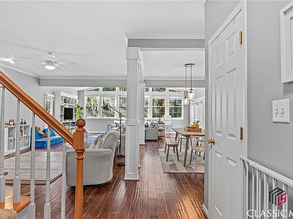 WELCOME HOME to this charming 3 Bedroom 2.5 bath home in McNutts Creek Subdivision! This home boasts wide plank flooring through the main floor, with a grand living room for plenty of family and guest entertainment with wood burning fireplace. The formal dining area is perfect for family dinners. The large sunroom features bright floor to ceiling windows and built in bookcases. The eat-in kitchen features granite countertops, stainless steel upgraded appliances, and updated fixtures. All bedrooms are upstairs, with the master bedroom featuring trey ceilings with a bay window sitting area. The master bath has dual vanities, a tiled shower and garden tub, as well as dual closets and a small additional space that could be extra closet space or a small office.The backyard is complete with a fenced in lawn and a nicely sized deck with a walking path leading to a beautiful gazebo with even more ways to host and entertain family and friends! Interior of the home was freshly painted in 2021! Swimming pool and tennis courts are part of the HOA.