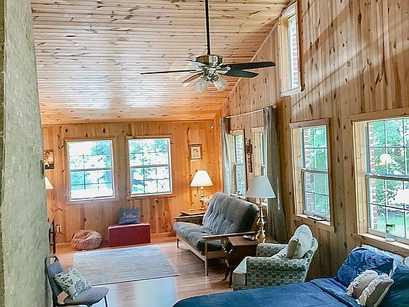 Newer 1 STORY. Locally milled interior Cedar walls ( lightly whitewashed ) Sunroom light pine. AGENTS WELCOME to 5% commission! No sheetrock entire house! House can be 2 or 3 bedrooms depending on if you prefer a third bedroom or more of a sunroom! Large open concept layout! 1 story only 8 yrs old. Pleasant,quiet, safe area with pleasant neighbors! Flat 1.7 acre lot partially wooded - lots of mature hardwoods. Parking for 15+ cars . Can hold an Rv, boat , etc....