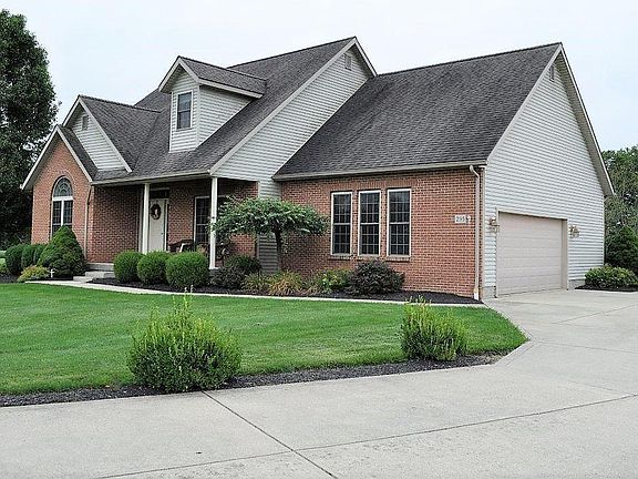 IMMACULATE is an understatement! This custom built home boasts over 4,000 sqft & is situated on nearly 2 acres. Entering the front door you'll find beautiful hardwood flrs that flow into the formal dining rm. Vaulted ceilings & gas log FPLC featured in the living rm. A well equipped kitchen is complete w/SS appliances, loads of counter/cabinet space, & eating area w/bayed window overlooking the backyard. The 1st floor also offers laundry, 3 generous BRS & 3 full BAs (including an Owner Suite w/private patio access & private bath w/soaking tub, separate shower, & dual vanities). 4th BR on 2nd floor. The LL includes a finished rec room w/wet bar & bar seating, bonus rm, den, & 4th bath! The full concrete driveway leads to the 2 car attached AND 16'x24' detached garages! No detail overlooked!