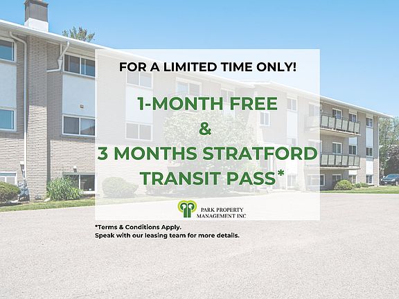 Well maintained clean building featuring Large eat-in kitchens, on site laundry. Close to downtown and within walking distance to shopping and restaurants. Schools and parkland are very close by (Anne Hathaway Park). Supers on site 24/7.Call or email us today to book your guided tour. Excellent Transit & Connectivity: 295 Home Street is well-served by Stratford Transit bus routes, offering quick access to downtown Stratford, shopping centers, and entertainment venues. Major highways, including Highway 8 and Highway 7/8, provide seamless travel to nearby cities such as Kitchener-Waterloo and London. Shopping & Dining at Your Doorstep: Residents enjoy easy access to Stratford Mall, local grocery stores, and essential services. Downtown Stratford offers a variety of boutique shops, cozy cafes, and award-winning restaurants, including options for both casual dining and fine culinary experiences. Parks & Recreation: The property is just minutes from Upper Queen's Park, the Avon River, and Shakespearean Gardens, perfect for outdoor activities such as walking, cycling, and picnicking. Stratford's Festival Theatre and community recreation facilities provide year-round cultural and leisure opportunities. Schools & Education: Families benefit from excellent nearby public and Catholic schools, as well as childcare centers and after-school programs. Post-secondary institutions such as the University of Waterloo's Stratford campus and Fanshawe College are also conveniently accessible. A Friendly & Welcoming Community: Stratford is known for its safe, family-friendly neighborhoods, vibrant cultural scene, and seasonal events such as markets and world-class theatre performances. The community's welcoming atmosphere makes it a great place to live for residents of all ages. Your Ideal Stratford Address: 295 Home Street offers a perfect blend of comfort, convenience, and community. With nearby parks, shopping, and cultural attractions, this Stratford property is a wonderful place to call home.