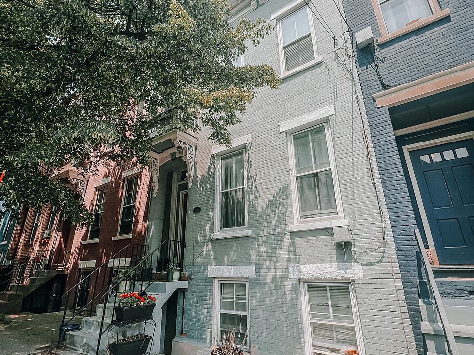Quintessential Center Square townhouse perfect for owner occupant with garden apartment. Newly painted exterior with hardwood floors throughout, crown moldings, skylights, ample closets for storage & MORE! 2 bed/ 1 bath + office owners unit currently vacant & newly remodeled 1 bed/ 1 bath garden apartment currently rented for $1,000/ month MTM. Newer on demand HW boiler & tank. Separate electric. Shared laundry & back yard with beautiful stone patio area.