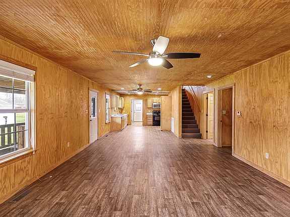 Great rustic 2724 sq. ft. home with metal roof, Hardy Board Siding, and wrap-around porch. Previously used as a 3 bed, 2 bath home in the county. This home has bead board walls and ceilings throughout. Other features include a mud room off the kitchen, a kitchen pantry, a large ceramic tile shower in the primary bathroom, a large bonus/rec room upstairs, a small computer area, and a nice size storage room off the bedroom upstairs. A large 32x32 detachable garage with double doors and a car stall on each side of the exterior of the garage. All interior doors in the house are 3 ft. wide. Termite contract. County taxes only!