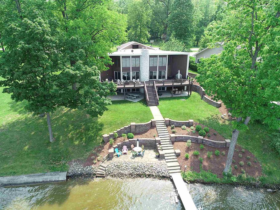 Remarkable Home with 99' of Frontage in Exclusive Phillips Bay on Lake James. Enjoy Breathtaking Views from the Wall of Windows and Multiple Patio Doors overlooking open water to Pokagon State Park. The Exquisitely Landscaped and Maintained Terraced Yard is an Entertainers Dream. This Home offers Truly Unique Architecture and was Extensively Remodeled and Rebuilt by Architect Robert Koors. There is space for everyone with over 4400 Sq Ft finished with 4 Bedrooms and 3.5 Baths. The Open Concept First Floor Features Original Scraped Hardwood Floors and Gorgeous Wood Planks on the Ceiling Centered on a Floor to Ceiling Stone Fireplace with overlooking Lofts. Ample Room for Summer Gatherings in the Open Kitchen featuring Stainless Steel Appliances and Custom Granite Counters. The Walkout Lower Level is Perfect for Guests. It offers a Family Room, Tiled Floor Entrance, Full Bathroom with Dual Vanities, Separate Shower and Commode Areas. Plenty of Storage for Wet suits and Lake Gear. Low Maintenance Deck spans the Entire Lakeside of the Home. New Concrete Driveway. The Incredible Beach area with Sandy Lake Bottom is Perfect for Swimming and Lake Toys.