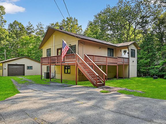 A/O 9.1.25 ... Spacious home with large yard on a quiet street - what more could you want? This beautiful contemporary home has had many upgrades over the last few years! The main level features an open kitchen, dining room and living room with partial wrap around deck - perfect for entertaining or just extended living space. Three large bedrooms and two full bathrooms complete the upper level. Downstairs features an additional space; perfect for playroom, home office or rec room. Home features newer HVAC system (2017). LARGE, level lot with garage and outbuilding for additional storage. All located within the Pine Bush School District.