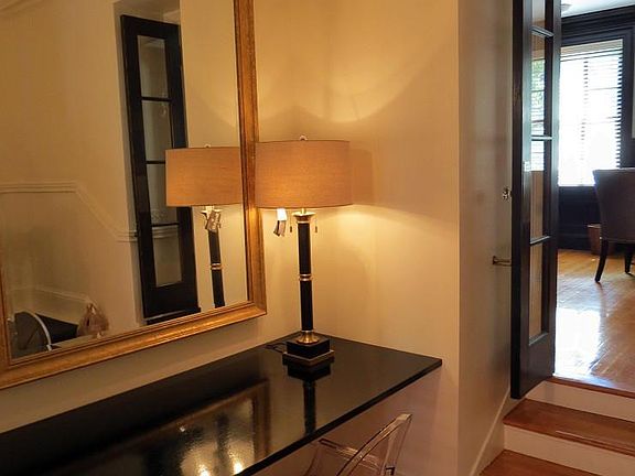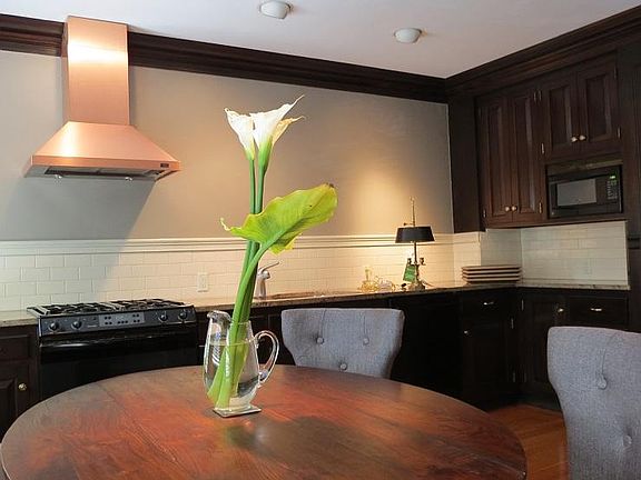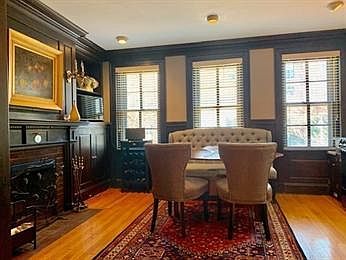 This exquisite parlor/second floor duplex condominium combines old world charm with crisp modern renovations. Parlor level living room features soaring ceilings with original moldings, carved marble fireplace, oversized windows and direct access to private deck. Beautiful eat-in kitchen features mahogany paneled walls, wood-burning fireplace, three south-facing windows, granite counters, Sub Zero fridge and custom built-ins. There is a built-in desk adjacent to the kitchen. Full staircase to upper level which features very spacious front-facing master bedroom with fireplace and south-facing bay window. Large second bedroom with fireplace, high ceilings and good closet space. Central Air, Security System, Full sized Washer/Dryer in a separate laundry room. Direct access to two tandem parking spaces behind the building! Rent includes hot water, gas, water and sewer. Tenant to pay for oil heat. Available asap for $7500. *Owner to pay half of broker fee*