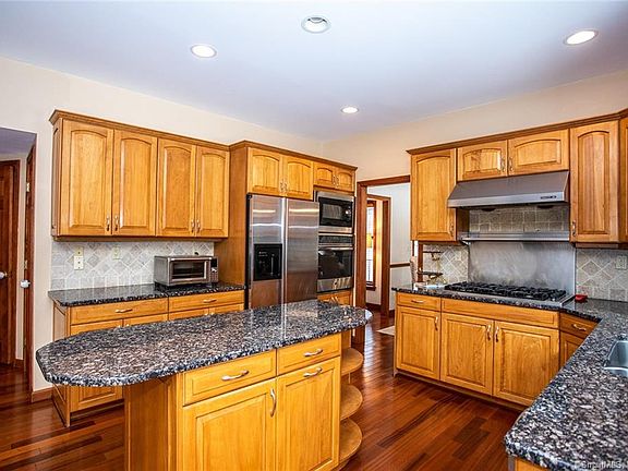 YOUR RETREAT FROM THE MODERN WORLD....CAPTIVATING CUSTOM BUILT 4-6 BEDROOM COLONIAL NESTLED ON OVER 3+ ACRES OF PICTURESQUE PRIVACY. BRIGHT OPEN SUN FILLED GRANITE KITCHEN FLOWS INTO THE FIREPLACED FAMILY/GREAT ROOM WITH CATHEDRAL CEILINGS. DINING ROOM WITH SLIDERS TO THE DECK, STYLISH LIVING ROOM, SPACIOUS SUNKEN STUDY, INCREDIBLE MUD ROOM AREA, LAUNDRY & HALF BATH COMPLETES THE FIRST FLOOR. PRETTY MASTER BEDROOM EN-SUITE WITH LOVELY FULL BATH AND IMPRESSIVE WALK-IN CLOSET, PLUS 3 OTHER BEDROOMS ON THE SECOND FLOOR. THE SPECTACULAR ENTERTAINMENT ADDITION ON A SEPARATE WING OVER THE 4 GARAGES IS SECOND TO NONE! IT FEATURES A FABULOUS EXPANSIVE GAME ROOM AREA, CHIC GRANITE FULL KITCHEN EQUIPPED WITH A WET BAR, WINE CHILLER AND GAS RANGE. A GYM ROOM AND FULL BATH MAKE THIS A PERFECT IN-LAW SET UP WITH A SEPARATE ENTRANCE, A TEENAGER/COLLEGE HANG OUT OR SIMPLY THE BEST PLACE IN TOWN TO THROW A PARTY! THE LOWER LEVEL IS ALSO FINISHED WITH A BEDROOM, BATH AND PLAY/REC ROOM. AWESOME WELL LIT BASKETBALL COURT TO PRACTICE YOUR SHOTS. NEWER FURNACE AND CENTRAL AIR. WRAP AROUND PORCH, WONDERFUL BACK DECK AND SO MUCH MORE. THIS HOME FITS YOUR LIFESTYLE IT'S A GORGEOUS MUST SEE!