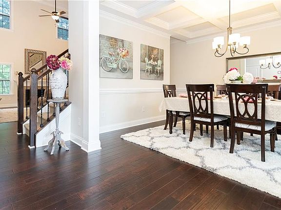 Beautiful custom built home w/ stunning hardwood floors & vaulted ceiling in great room with a fireplace. Dining room features a coffered ceiling. Gourmet kitchen w/ stainless steel appliances & solid white shelving in pantry. Master bedroom features a tray ceiling & sitting room. Master bath boasts a walk-in shower, garden tub, dual vanity, & walk-in closet w/ solid shelving. Screened-in porch overlooking private, fenced-in backyard. Neighborhood has walking trails & pool. Low county taxes. Merimont Plan