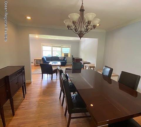 Furnished Winter rental a few blocks East of Monmouth University and less than 1 mile to Long Branch beaches ! This bi-level home has 6 spacious bedrooms, 3 bathrooms, plenty of parking in the driveway and 2 large living rooms. Granite counters in eat-in kitchen with 2 sinks. Hardwood floors in upstairs living space. Central air throughout. Available 9/1/25.