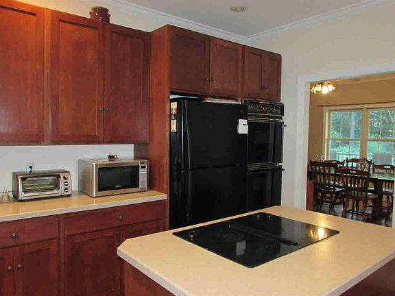 Total peace and quiet! Lovely home begins with an over-sized covered front porch. Special features include a beautiful kitchen with rich cherry cabinetry. Huge Dining Rm with hardwood floor, Living Rm, Family Rm also offers hardwood. Large en suite Master Bedroom, two additional bedrooms, full hall bath. Huge two-car garage with over-sized doors and high ceiling. Above the garage is a storage room. The home also offers a walk-out basement, with two sliders for lots of natural light. A House to call Home!
