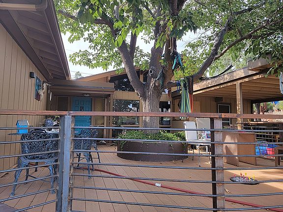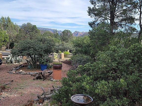 Great family home located in the desirable Sedona West Subdivision, in the heart of West Sedona close to shopping & restaurants. Huge front and rear yards, absolutely gorgeous large new trex deck on front facing view of Mogollon Rim. Glowing red rock views at sunset. New covered patio in rear yard, storage shed. One level with tile floors throughout. Spacious living room has soaring mid century modern wood ceiling with floor to ceiling windows to let in the light and views, large shade tree keeps the room cool. Split bedroom floor plan that makes a fabulous use of the 2173 sq. ft. of living space. Large family room with wood burning fireplace located just off the kitchen. Large master suite plus three other bedrooms for guest and home office space. Sedona West subdivision trail head with access to hiking to Sugar Loaf and Chimney Rock.