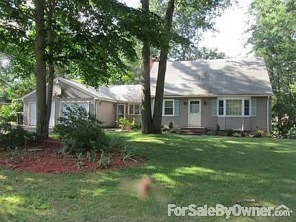 Well maintained full dormered Cape with 2400 sq ft of living area on a level 0.5acre yard in a quiet Cul de Sac neighborhood with plenty of space between houses. A 24ft above ground pool, surrounded by a private deck sits next to an $8,000 hot tub on a large patio. Perfect move in condition, freshly painted, wood floors refinished. New windows, and appliances. FIRST FLOOR: 24x17 Family Room addition is complete with custom red oak built in shelves and cabinets. Includes a brick fireplace, eating nook, new slider to patio, tile floor, large Velux skylights and two bay windows. 12x12 Kitchen updated in 1991includes an eating bar, new stainless French door refrigerator, new gas stove, microwave and pantry. The eating bar is open to the 11x11 Formal Dining Room. 16.5x11 Formal Living Room and large Bay Window, coat closet. 11.5x11.5 Bedroom/ Office space on the first floor with large closet. bath updated in 1991. SECOND FLOOR: 17.5x11.5 Master bedroom wood floor, and walk in closet. 16.5x11.5 Bedroom large closet, wood floor. Full bath updated in 1991. Other: Full finished basement with new hot water heater, and washer/dryer. Gas heat, new programmable thermostats for three zones. Septic and roof replaced in 1991. 2 car attached garage. Copper flashing around chimney. Taxes @ 5600/yr. Elementary School Keeney Street. Additional property info: http://www.forsalebyowner.com/listing/3745E?provider_id=28079