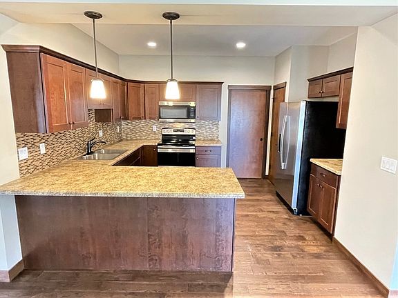 Beautiful zero entrance (no steps into unit from front door or garage) ranch style condo with gas fireplace & access to the deck from the vaulted great room & dining area. Beautifully appointed kitchen features all stainless steel appliances, tiled backsplash, pantry and breakfast bar. Convenient main floor laundry comes with washer & dryer that has access both from the main bedroom walk-in closet and the kitchen. 2 bedrooms on the main floor (main has tray ceiling), both with ceiling fan/light combination plus a third bedroom in the walk-out lower level. Three full baths, too! Family & rec rooms in the daylight, walk-out lower level to patio with open sweeping views of green space. Ample storage in the mechanical room. Water softener remains with the home. Startup fee of $250.00. Cats & dogs allowed, no more than two each. See restrictive covenants.