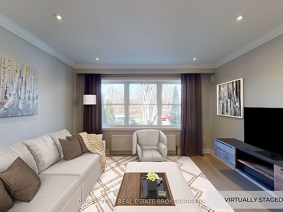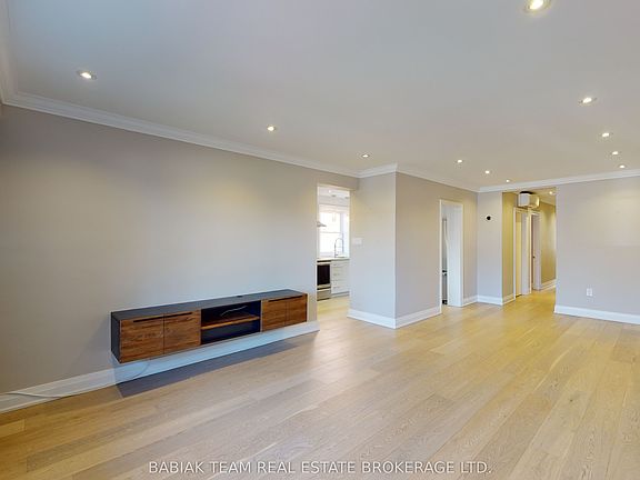 Fully renovated and well-maintained 1,066 sq.ft. 3-bedroom suite with high ceilings and pot lights throughout. Functional kitchen with full-sized fridge and a dishwasher. Three generously sized bedrooms, all with closets, including one large walk-in. Updated bathroom plus ample storage with coat and linen closets. Amazing value includes one parking space (permit street parking also available), heat and water. Hydro extra. Shared laundry on the lower level. Located on a quiet cul-de-sac overlooking the Humber River and Scarlett Mill Park, steps to the Humber River Trail and minutes to TTC. Available March 1.