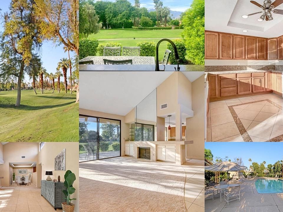 REDUCED! - 2 Bedrooms, 2 baths & a den/3rd bedroom approx. 1,800SF. Freshly Painted & New Carpet installed - ready to move into & enjoy right away. Monterey Country Club home features west views of the golf course & Sunsets. Open floor plan & vaulted ceilings contribute to ample space in the Alhambra 300 plan with Atrium converted to dining room for added living space! Large master bedroom with large walk-in closet. Outdoor space includes a large patio with golf course & west mountain views, relax and watch the sunset. Walk to pool & spa. Monterey Country Club features a clubhouse, fitness center, championship 27 hole golf course, pickle ball, deluxe tennis courts & beautiful grounds, w/several membership options, see attached for more info. Monterey CC is centrally located in Palm Desert near restaurants, college, theatre & shopping. PERFECT weekend getaway, 2nd home or full time residence! Note:Photos with furniture are virtually staged to help visualize use of rooms.