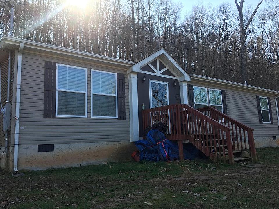Private 7.06 acres with 3 bedroom 2 bath manufactured home built in 2011 at the top of a beautiful secluded home site. Wall behind living room couch was put there by the sellers and can be removed for a wide open floor plan! Large master bath and walk in closet - Laundry off the dining area - Stove, refrigerator and microwave do not convey. There is also a 720 SF 1 bedroom 1 bath unfinished cabin built in 2006 with rental potential. Cabin is separately metered, but shares a well with the main home. Cabin needs TLC. Photos of cabin available upon request. Call agent for more info