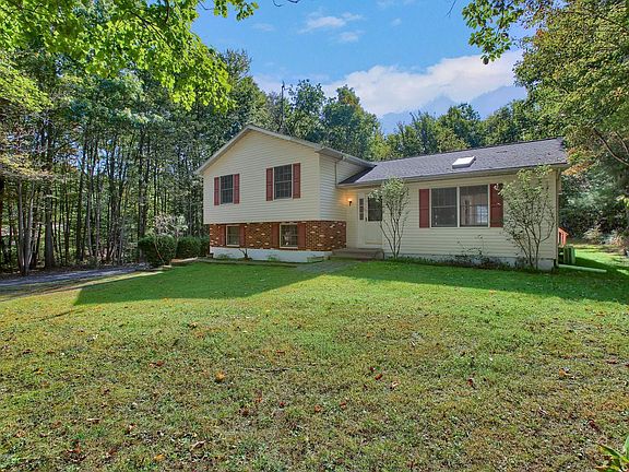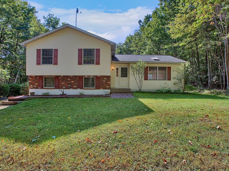 Fantastic opportunity to own this ultra-affordable 3 bedroom, 2 full bath split-level home in sought-after Chestnuthill Township, Pleasant Valley School District! Located just moments to downtown Brodheadsville shopping, grocery and schools and easy access to Routes 33 & 80, this home sits on a perfectly flat 1 Acre property backing to wooded private parcel. Enjoy relaxing on freshly-stained deck soaking in the sunlight and listening to the singing birds. Inside find new paint and flooring throughout. Split-System AC keeps you cool all summer. Oversized wraparound driveway provides plenty of parking and built-in garage has lots of storage. Newer Roof too! Estate sale opportunity being sold as-is. Very few homes with these features at this price - do not wait!
