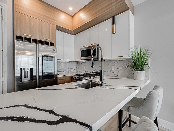 Buying a home has never been smarter with this high tech, high-end, new construction home in The Heights. Power is at your fingertips with full control home automation systems in the 3 bedroom, 2 bath, penthouse with private roof deck & a bonus ground-floor home office with powder room. Control your home with Alexa voice activation, mobile phone, or the 8-inch touch screen giving access to lighting, window shades, security, temperature, or professional audio system with zones in each room! Super smart appliances include dishwasher, washer and dryer, microwave and 36in refrigerator that gives recipes, shopping lists, content review and more. Modern design matches the interior theme with clean lines, bright tones and thoughtful floorplan. Living room shines with floor to ceiling windows, plus marble fireplace with built-in floating fireplace. Incredible craftsmanship is showcased through stylish accents like light oak herringbone floors, ceiling molding, and carefully curated pendant lighting. Marbled quartz waterfall counters with eat-in peninsula island and modern white and wood custom cabinetry finish the open floorplan kitchen. Bathrooms boast elements like floor to ceiling tile or matte black wall with matching wide pedestal wash basin. Midnight blue wainscotting bathes the primary ensuite, highlighting the oversized closet and private terrace. Upstairs layout allows for spacious private roofdeck above, plus incredible separate ground level living area, ideal for additional office, guests or flex space. Settled on a tree-lined street in a quiet corner of Jersey City Heights, these homes offer walkability to Central Avenue, Washington Park and easy NYC access. TECH FEATURES Full control home automation system with Alexa voice activation Control your home at your finger tips with smart phone or built-in 8 inch screen the security cameras, video, doorbell, locks, temperature, lighting and all other switches Full professional audio system with separate zones for each room Fully automated window shades Smart appliances Microwave Dishwasher Washer & dryer 36" refrigerator with 21.5 inch touch screen providing recipes, grocery shopping, content review and more Smart mirrors in bathrooms