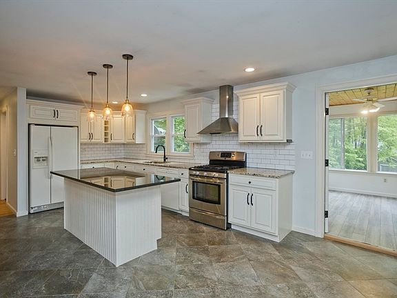 H&B offers due Tuesday, 5/21 @ 6 PM. Welcome to your oasis of comfort & style in this exquisite, MOVE-IN READY Ranch-style home, perfectly situated in one of Westfield's highly desired neighborhoods! The renovated kitchen has an open-concept design, showcasing an over-sized island doubling as a breakfast bar. Enhanced w/ recessed & pendant lighting, complemented by a tile backsplash & tile floors. The generously sized living room is adorned w/ hardwood floors, featuring both a stone fireplace with a wood stove, illuminated by recessed & natural lighting. The updated full bath showcases a tiled shower, cast iron tub, & laminate flooring. 3 spacious bedrooms boasting HW floors & double closets for ample storage space. The recently updated sunroom is a serene retreat within your own home. Bathed in natural light with laminate floors, a cedar ceiling & ceiling fan. Expansive backyard w/ fire pit & shed. All appliances & wood stove to remain. Don't wait to to become the lucky new owner.