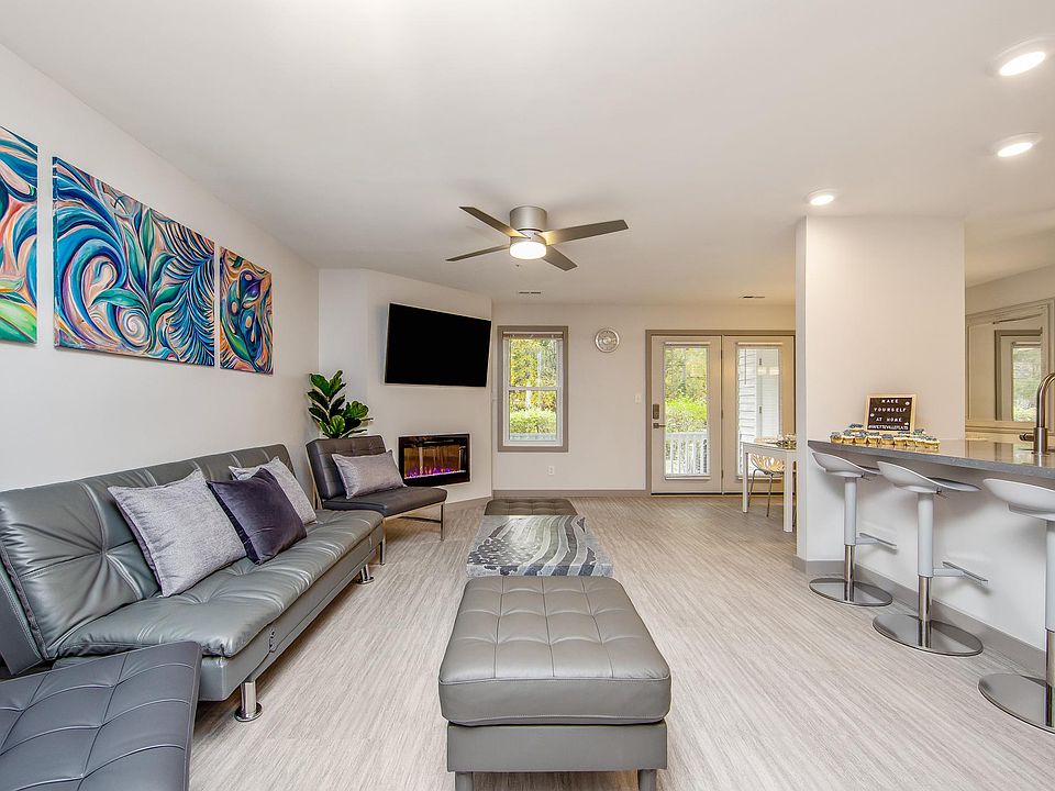 FULLY FURNISHED 2 bed-2 bath, 1st floor condo unit -- PERFECT if you're in town visiting family, on a business trip, or a TDY Soldier/Contractor. This newly renovated, modern condo is located in a friendly neighborhood within 10-20 mins. of Ft. Bragg, Downtown Fayetteville, and Fayetteville Airport. The condo is also located within 5-10 mins. from the shopping centers, restaurants, and entertainment on Skibo Rd. We provide you with all the amenities and luxuries you would experience in your own home. We want you to feel at home and able to focus on your reason for stay! Provided For Use: Kitchen & Dining: * Filtered Tap Water (kitchen faucet) * Cookware * Dinnerware Appliances: * Crock Pot * Rice Cooker * Sliced Bread Toaster * Keurig K-cup Brewer * Traditional Coffee Maker * Electric Water Kettle * Fridge-Freezer (with ice maker) * Electric Range (stove & oven) * Microwave * Dishwasher Wash Room: * Washer * Dryer * Iron w/ Ironing Board * Cleaning Equipment (broom, dustpan, mop, surface cleaners) Complimentary Hygiene Items: * Bodywash * Shampoo * Conditioner * Hand Soap * Hand Sanitizer Other Items: * Smart TVs (in 2 Bedrooms & Living Room) * LED Fireplace (Living Room) * Bath Towels * Hand Towels * Wash Cloths * Hair Dryers (both Bathrooms) * Pack-n-Play * Highchair * Children's Dishware * First Aid Kit * Fire Extinguisher Please Note: * Community spaces such as swimming pool, grill area, tennis court and play ground may be unavailable for use due to the season change, maintenance or closed by HOA due to COVID-19 * Special requests will be negotiated on a case-by-case basis Lease contracts are on a monthly basis, but we reserve the right to terminate contracts at any time for any unauthorized activities. Rules to abide by: - Absolutely no parties, and loud noises after 10pm as courtesy to our neighbors - No unauthorized tenants - No subleasing of rooms - No smoking in the unit - No grilling on the back porch due to potential fire hazards - No fireworks - No tampering of the internet, security cameras and smart locks - Any illegal activities in the jurisdiction of North Carolina will get authorities involved For any issues and/or damages, please inform the rental management immediately in order to address in a timely manner.