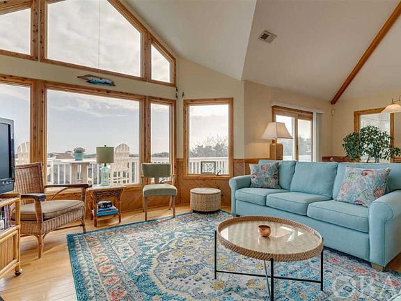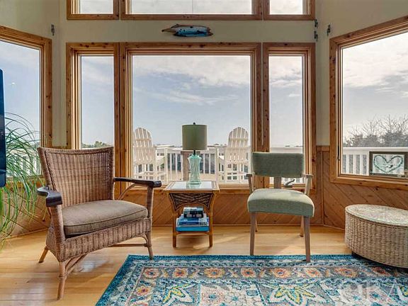 Check out this Fantastic Southern Shores Cottage with the Million Dollar View! If you like Gorgeous Ocean Views and beautiful everyday sunrises, and sunsets, this home is for you! This 2,900â Southern Shores Westside Five Bedroom/4.5 Bath home is an Exceptionally well-built home that has been well maintained over the years! The builder customized this home with wainscotting throughout, Ceiling fans in most rooms, all solid wood doors, and the best windows you could buy to show off the most spectacular OCEANVIEWS. I asked the sellers about their home and was told it took them two years to find their âperfect houseâ and once they saw this one, they never looked back. Sitting on a half-acre lot this Classic Dune Top home sits back on the lot surrounded by beautiful low maintenance natural landscaping and outside lighting. If you love the outdoors at the beach, we got you covered here with a sizeable covered wrap-around deck with a hot tub area, sundecks looking out at those gorgeous ocean views, a covered deck for grilling right outside the kitchen door and two outdoor showers. Top floor has an open floor plan with Cathedral Ceilings, Oak hardwood floors throughout kitchen, living, dining and master bedroom. Living room has a Custom Stone gas fireplace and windows from wall to wall. Spacious kitchen with double size pantry, sit at bar and gas stove. Sunroom with tiled floors and wall-to-wall windows. Top Floor Powder Room. Master Bedroom with ocean views! Walk in Closets, double vanity sinks, jet tub. Mid-Floor has a large tiled Foyer with another master suite plus three bedrooms and a large bathroom. Laundry closet, and two other large linen closets. You will find your Game Room on the ground floor with another full bath and entrance to the carport and two garages. Now that you took a tour of the house, come visit and check out the short walk/bike ride to the beach, just a 12-minute walk. Very close to Hillcrest beach access which is an easy street to cross. This home and location are guaranteed to make you fall in love at first sight! Extras you donât see in all homes: Tinted Windows on all the front windows, Electric storm shutters on the East & North facing windows, House is wired for a 7500 watt generator, stair-master that holds up to 400lbs from ground floor to top floor, irrigation system and lightning rods.