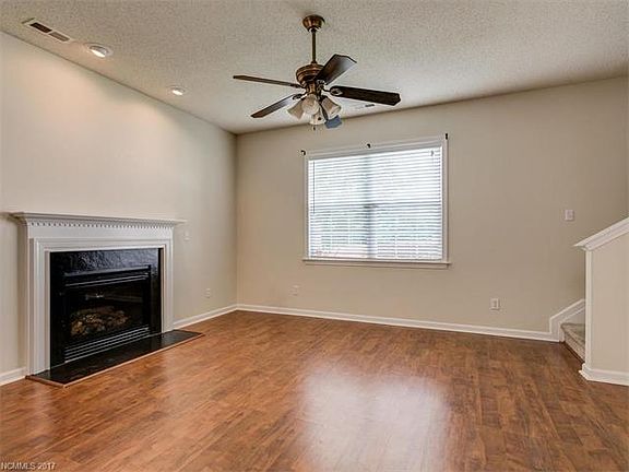 The Cove at Livingston Farms! This attractive, 4-bedroom home offers an open floor plan, a roomy kitchen, laminate wood floors in living and dining areas, and a gas fireplace on the main level. Upstairs, the master suite includes an upgraded bath with glassed-in shower and walk-in closet. The back door opens to a level, fenced yard with a patio and handy retractable awning. A wooded backdrop and the adjoining network of walking trails make this a perfect setting for your lifestyle. Welcome home!
