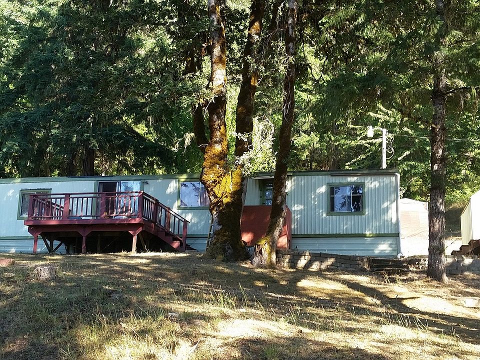 Beautiful & remote 5 acre property with so much to offer. Older manufactured home still in good/livable condition. Horse arena, several outbuildings, river access. Spring and 1200 gallon holding tank with two filtration systems used as current water source, also has a well. BLM riding nearby, 1 hour to the coast and less than 30 minutes to I-5.