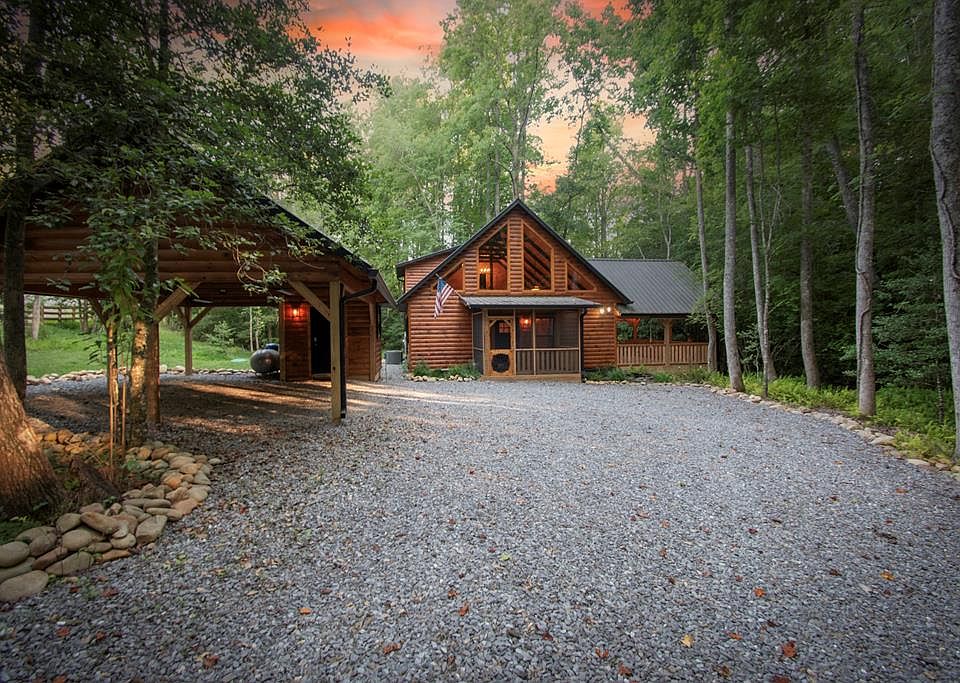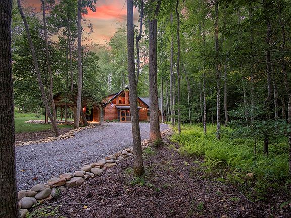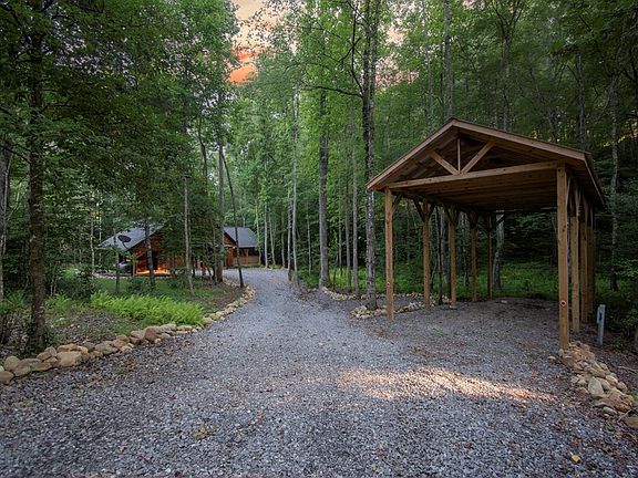 If you've been searching for the perfect cabin, this custom builders home checks all the boxes. Perfectly positioned beneath the trees and among the ferns, the babbling creek is the background music to your new life. The double detached carport and the rv carport is a rare find by itself. Entering the front screened in porch, take a step into the home and be dazzled by the glowing wood interior, stone gas fireplace, and stunning kitchen with granite countertops and island. Your first primary suite is on the main level with it's own private fireplace and en suite bathroom. A bonus room which could be used as a third sleeping or an office is also on the main floor. Upstairs in the loft is a second primary suite. The side covered porch is large with it's own fireplace to stay warm while keeping the conversation going on chilly nights. Both the porch and the firepit area overlook the large stream. Enjoy all the mountain seasons while you fall in love over and over with living life in the Appalachian mountains.
