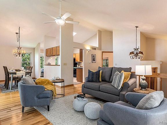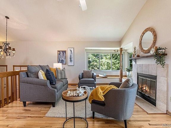 Nestled in The Retreat neighborhood of Castle Pines. You're instantly greeted by the mature landscaping and tranquility this community offers. Step inside the home and you're welcomed by an abundance of natural light, new carpet and gorgeous hardwood flooring throughout the main level. This open floor plan and privacy allows for easy entertaining or peaceful relaxation. A large living room offers a fireplace next to a built-in sitting bench and a slider door that opens up to the outdoor deck. The spacious primary bedroom has large corner windows protected by mature trees for privacy and an ensuite bathroom. The lower-level plays host to the additional bedrooms, laundry room, full bath and bonus living/game room. This is the perfect space to watch your favorite shows or play games. The bedrooms both feature custom closets and new carpet throughout. The home is just a few steps to the community pool and park. Surrounded by world class golf courses, trails and highly rated schools making this home an absolute win! Shopping and highway access is located just a few minutes outside of the community.