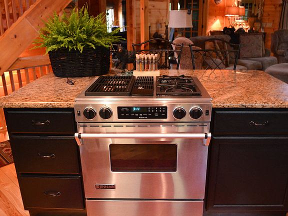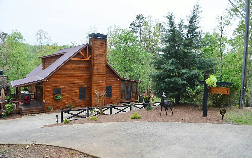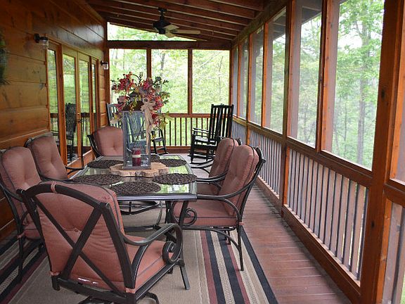 You can hear the river at Fish Trap Park from this cabin. Great room is open and spacious with soaring ceiling, imp;impressive stone fireplace is wood burning, kitchen appliances are Jinn air with range build in to island. The master bedroom has French doors that open to great room so you can enjoy your fireplace while lounging in bed. The upper level suite also offers a private bath and French doors that open to the loft for an expanded sitting room.The screen porch is large and offer so much expended room for entertaining in addition to the deck with the exterior fireplace and tranquil setting for your morning coffee or evenings under the stars. Basement has a finished den, bedroom, bath and a private screen room as well as a drive under garage. 10/29/15