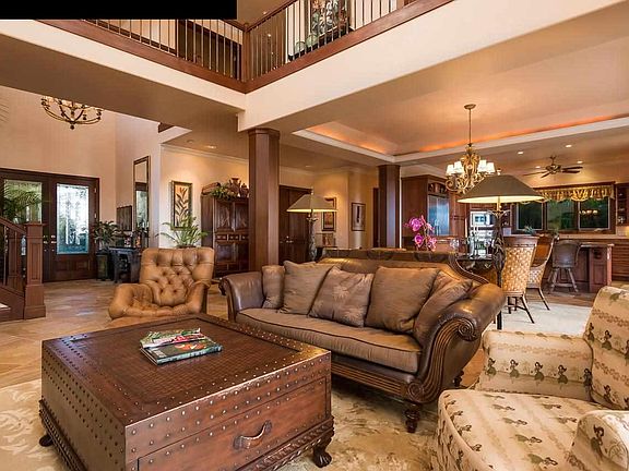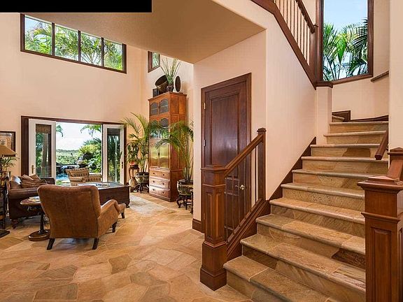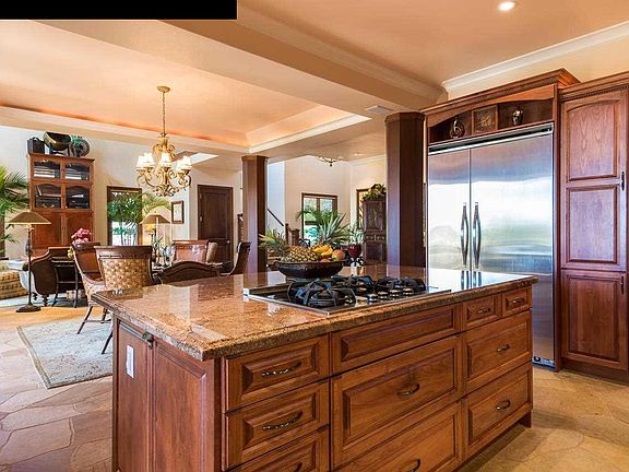 Aina Lani, Hawaiian for 'Heavenly Land', characterizes this location on the Western edge of Pukalani. There are captivating Ocean, Maalaea Bay, Island of Lanai & W. Maui views across acres of fields. Pukalani, or 'Hole in the Heavens', offers some of the finest weather on Maui. At this 1200 ft elevation, the air is temperate & fresh, & there is a lovely balance of moisture & sunshine. Upon entering this elegant 3 bedroom, 3 bath, 2826 s.f., 'Wailea-Quality' Residence overlooking the Kalialinui Stream, this Seller's commitment to the finest quality, design & execution is evident. Features include custom leaded-glass & mahogany dual front-doors, warm toned quartzite floors & a gracious open two-story living room filled with light from the mahogany encased Pella double-pane Low-E glass windows above. Your inner chef's dream; the island style kitchen, features Firenze custom granite, ample, solid wood, soft-close cabinets, & all new Sub Zero & Wolf appliances. Crown-molding, African mahogany columns, marble topped master vanity & shower surround, tray ceilings, recessed halogen art lighting, Kohler porcelain & solid brass fixtures, handmade mahogany railings with patina'd copper balustrades, & tropically etched mirrored glass sliders are just some of the custom features. Relax in the lushly landscaped private natural-edged pool & spa with waterfall or enjoy painterly sunsets from the master suite's private lanai with wet-bar. Pukalani has a lovely 18 hole golf course & is close to the unique shops, galleries & restaurants in Makawao while being approx. 15 minutes to Kahului & the airport.