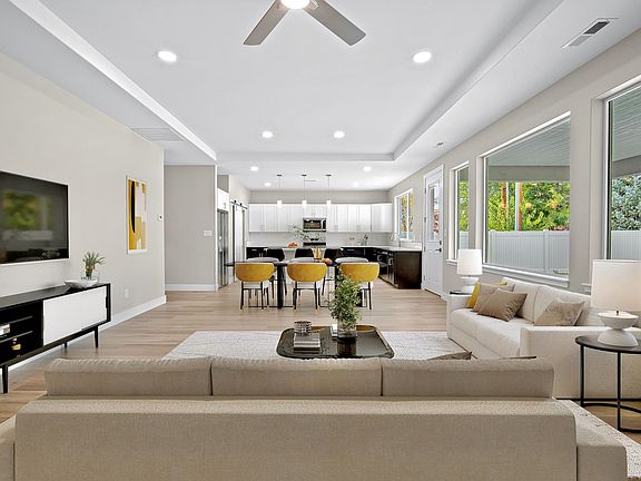 Front Yard Landscaping & Vinyl Fence Included!! New construction ranch home crafted by Paretto Builders with 1883 sq/ft, 4 beds, 2 baths, and 3 car garage on a desirable end lot with no neighbors to the left providing extra privacy. Step inside to discover an inviting open floor plan with 9-foot ceilings and a stylish tray ceiling in the living room, all enhanced by luxury vinyl plank flooring and abundant recessed lighting. The spacious kitchen includes stainless steel appliances, quartz countertops, pantry with a barn door, and cabinets with dovetail constructions and soft close hinges. The primary suite is fitted with a 5-piece bathroom complete with a fully tiled shower, soaking tub, separate toilet room, dual vanity, and a generous walk-in closet. Enjoy outdoor living on the covered patio, surrounded by a fully fenced backyard with picturesque views of mature trees and listen to the soothing sounds of birds chirping. The 3-car garage provides ample space for vehicles and storage. With central air conditioning to keep you comfortable year-round, this home offers everything you need for modern living.