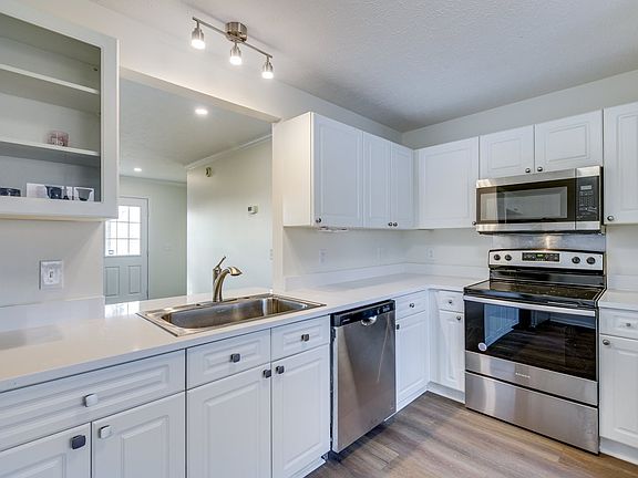Renovated Townhome in prime location. New Quartz countertops and appliances in Kitchen, New bar extended into living room. Entire Interior has been Professionally painted and drywall repaired. New laminate flooring throughout downstairs, the stairs and upstairs. New vanities in bathrooms and Tile. Refinished Garden Tub in Primary Suite. New light fixtures. Refinished deck. New hardware on Kitchen Cabinets. New awning for over front door has been ordered. New water heater. New storm door. 2 new ceiling fans. Convenient to shopping and restaurants.