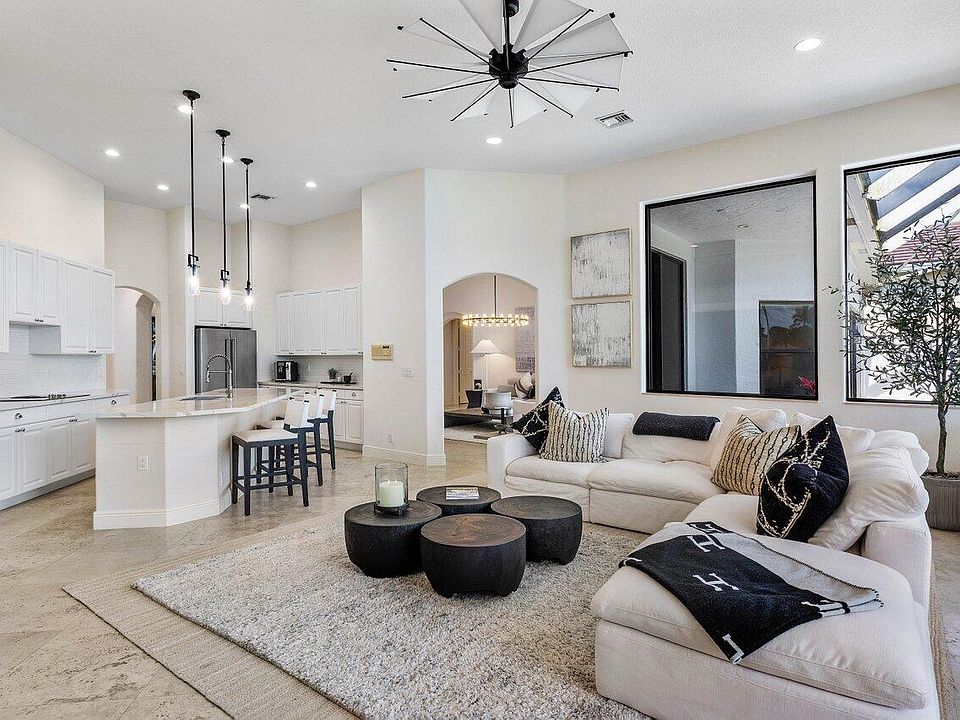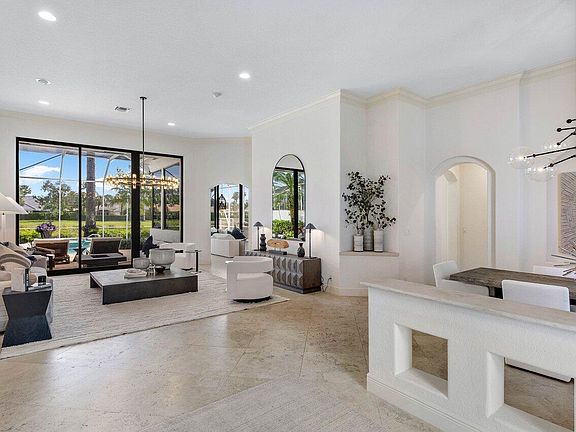 This Exquisite Property awaits you! Located in prestigious Bent Cypress at Palm Beach Polo & Country Club. This gorgeous 4 bedroom, 4 full bath with cabana bath, 2 car garage plus golf cart garage with ceramic tile flooring offers a spacious and airy open floor plan featuring travertine flooring, and soaring ceilings with natural light throughout. Step outside to your own private paradise that over looks an enclosed patio, heated pool & spa and BBQ with a water view! This home offers a seamless blend of indoor comfort and outdoor tranquil living! New impact glass throughout. Don't miss your chance to make this exquisite home yours! Schedule your tour today!