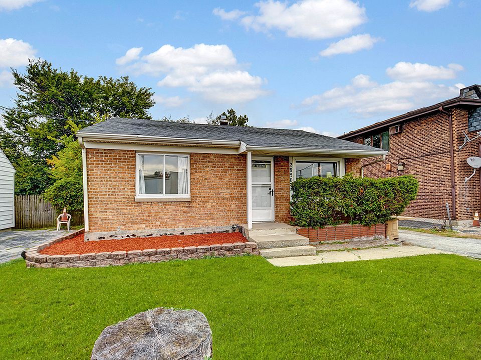 Economically appealing-budget-friendly and move-in ready! Wave goodbye to your landlord and come see this sturdy brick ranch, completely move-in ready and just waiting for you to call it home. Inside, you'll find a sparkling, bright, freshly painted interior with classic white trim and doors throughout. The main level features a welcoming living room with newer Pergo flooring, two bedrooms with brand-new carpeting, and a recently updated ceramic tile bathroom. The kitchen features timeless oak cabinets, brand-new quartz countertops, a stainless steel oven/range, side-by-side refrigerator, new dishwasher, and new microwave. The lower-level basement is perfect for indoor entertaining, offering a large family room, an office-or potentially a third bedroom-and a laundry room with a convenient adjacent half bathroom. Outside, enjoy a big 2.5-car garage with alley access, plus additional apron parking on the side of the home. This is a great home for anyone who enjoys a vibrant location with easy access to expressways. Easy to show and easy to buy-schedule your private viewing before it's gone!