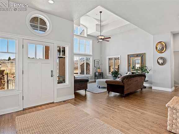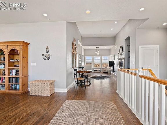 This stunning property, in the Keene Ranch community, offers luxurious living and an impressive list of features. As you approach the property, you'll immediately notice the beautiful courtyard entrance with elegant pavers leading to the front door. Once inside, past the foyer, you'll find yourself in a gorgeous gourmet kitchen with double islands, perfect for preparing and entertaining. The kitchen is equipped with high-end appliances and ample storage space, making it a dream for any home chef. The master bedroom is a true retreat, featuring a cozy fireplace, walk-out access to the outdoor space, and a spa-like en-suite bathroom that boasts a freestanding tub, and jetted shower. The master closet is also a highlight of the property, with built-in drawers and shelves, as well as valet hooks for added convenience. And for even more convenience, laundry hookups are located in the master closet. Upstairs, you'll find a spacious loft with breathtaking views and walk-out access to a deck, perfect for enjoying the beautiful Colorado scenery. For those who love to entertain, the basement features a theater room that is sure to impress. This home is also equipped with fiber optics, ensuring lightning-fast internet speeds for all your online needs. If you're a DIY enthusiast or a hobbyist, you'll love the workshop with electrical connection and running water. There is also a utility sink and the separate heated room is perfect for storing tools and materials. The workshop has 12-foot double entries that can easily be converted into a barn, making it an ideal space for horse lovers or those who want to store their recreational equipment. This property is located in a community that has over 20 miles of hiking and equestrian trails, providing endless opportunities for outdoor adventures. Whether you're a nature lover or a fitness enthusiast, you'll appreciate the beautiful surroundings and the many amenities this community has to offer.