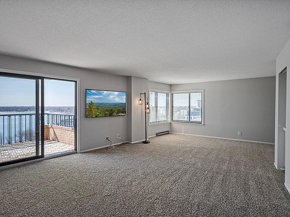 Experience the ultimate in lakeside living with this beautifully renovated condo overlooking the breathtaking waters of Bde Maka Ska. Sun-drenched interiors offer panoramic views from every room, creating a peaceful retreat in the heart of the city. This sophisticated residence features a spacious, open floor plan with two generous bedrooms, perfect for guests or a home office. The kitchen boasts brand-new stainless steel appliances, while freshly painted walls and new carpeting enhance the modern, move-in-ready feel. Enjoy the convenience of a dedicated parking stall and a storage locker, plus access to the soon-to-be redesigned Plaza-level amenities that will elevate your lifestyle. Situated in a prime location, you're just steps away from upscale dining, grocery stores, and endless lakefront activities. 2nd parking stall available to purchase.