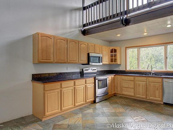 A wonderful, large home on 2.72 acres in the heart of the Valley. This house is spacious throughout. A large, well designed kitchen with granite counter tops and an eat in dining area. The living room is filled with light spilling in from the wall of windows. The living room also features soaring ceilings, Tiger wood hardwood floors, doors to the wonderful back deck and a cozy wood stove. There is also beautiful Quartzite flooring int the kitchen and entry area. The unique loft space overlooking the living room could be used as a reading nook, artists studio, home school area, office, play area, quilting room, etc. The downstairs features a Large Master Suite, there is s spacious full bathroom, laundry area and 2 large bedrooms. Downstairs features vinyl flooring with in floor heat. The attached 2 car garage has in floor heat and has ample storage. This is MSB unrestricted land with plenty of room to build a shop, stables or other facility. The land fronts Fairview Loop with some clearing you would have a road front location or keep the trees and privacy and live in the beauty of nature that keeps this one a private retreat. There is a mobile home on the property that can be used for storage or removed by new owner. also beautiful Quartzite flooring int the kitchen and entry area. The unique loft space overlooking the living room could be used as a reading nook, artists studio, home school area, office, play area, quilting room, etc. The downstairs features a Large Master Suite, there is s spacious full bathroom, laundry area and 2 large bedrooms. Downstairs features vinyl flooring with in floor heat. The attached 2 car garage has in floor heat and has ample storage. This is MSB unrestricted land with plenty of room to build a shop, stables or other facility. The land fronts Fairview Loop with some clearing you would have a road front location or keep the trees and privacy and live in the beauty of nature that keeps this one a private retreat. There is a mobile home on the property that can be used for storage or removed by new owner.