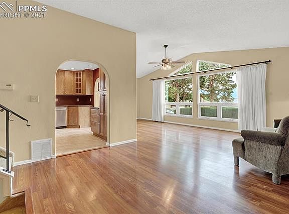 Amazing views on a Cul de Sac! The expanded entry sets the stage for this light and bright home great with generous room sizes and professional additions you wont find elsewhere! The main level living room and dining wall of windows frames Pikes Peak for non-stop views! Kitchen has plenty of solid surface countertops & cabinetry, a double oven range and an exterior vented hood. 22x14 Rec Room on the main level walks out to the private backyard and offers endless possibilities for exercise, crafts, home office or home theatre! Upper level boasts a true Master suite with a private bath, two large closets (one is a walk in), a double sided fireplace, sitting room that walks out to the huge back yard. Two more bedrooms and a full bath grace the upper level. The lower level offers another huge family room with fireplace, recently remodeled bath, 4th bedroom and laundry/utility room. Tons of storage in the crawl space under main level and also under the master bedroom addition. Garage is fully finished in drywall and has some cabinetry and shelves. 10X15 "Other Room" is sitting area in Master