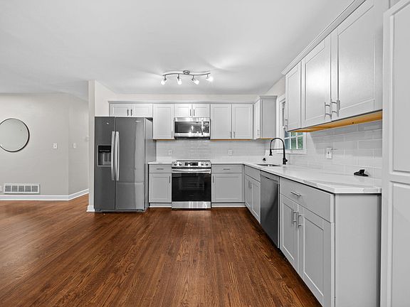 Welcome to this completely reimagined Raleigh ranch, where timeless design meets modern luxury in a stunning, single-level floor plan. Meticulously renovated, this home offers the ultimate turnkey experience, allowing you to move in and immediately enjoy a lifestyle of comfort and sophistication. The heart of the home is a professionally designed culinary kitchen, featuring new gray shaker cabinets, premium Level 4 Carrara white quartz countertops, and a striking custom mosaic tile backsplash. A full suite of brand-new stainless steel appliances—including a quiet, low-decibel dishwasher—is ready for everything from daily meals to effortless entertaining. The bright, open interior showcases freshly painted walls, smoothed ceilings, and newly refinished hardwood floors sealed for exceptional durability. A versatile bonus room with new waterproof luxury vinyl plank flooring provides the perfect flexible space for a home office, gym, or media den. The spa-inspired bathrooms serve as a private retreat; the primary bath boasts a new custom tiled shower with a soothing waterfall head, while the hall bath impresses with a new double vanity topped with Carrara marble. This comprehensive update includes significant peace-of-mind upgrades: a 2022 water heater (w/ warranty), new brushed nickel lighting and hardware throughout, new custom interior and exterior doors, and a freshly painted exterior with handsome custom wood pillars that enhance its curb appeal. This isn't just a renovation; it's a new standard of move-in-ready living in Raleigh.