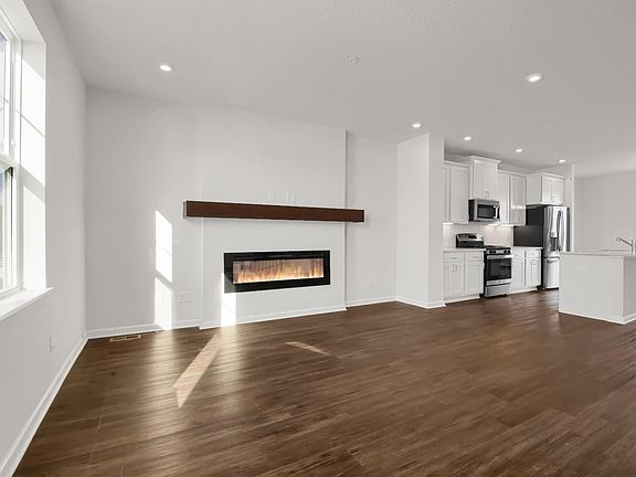 Entering this home, you travel up a flight of stairs to the main living space. This open-concept space includes the family room, kitchen, dining area, and a half bathroom. The family room is situated perfectly on one end of the home with an electric fireplace. Enjoy the kitchen’s modern stainless steel appliances. The dining room includes access to the private balcony. The laundry room with an included washer and dryer is tucked away alongside the dining room.
