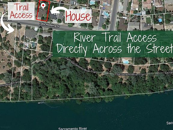 VIDEO TOUR LINK BELOW! Across the street River Trail Access! This Lake Redding home has gated RV/Boat Parking & a BRAND NEW ROOF! 3 bedrooms, 2 bathrooms, indoor laundry room & vaulted ceilings. The family room is open for today's lifestyle. And there's a separate living room that would make a great office or 4th bedroom! The Owner's Suite is very spacious & has a walk-in closet and a slider to the backyard. Another bedroom also has a walk-in closet also! Backyard is fully fenced with mature redwood trees and a covered patio! Affordable City of Redding Utilities & great internet! This home has been in the same family for over 20 years and has been so well-maintained - good bones! Just waiting for your cosmetic updates. Call/Text LISTING AGENT DIRECTLY: 530-209-1716 YouTube Video Tour: https://youtu.be/dOZMMMRyrUE 3D Virtual Tour: https://my.matterport.com/show/?m=CTyugw1Z56d&brand=0 DRE #02012740 Broker DRE# 01901205 Magnolia Homes/Venture Properties