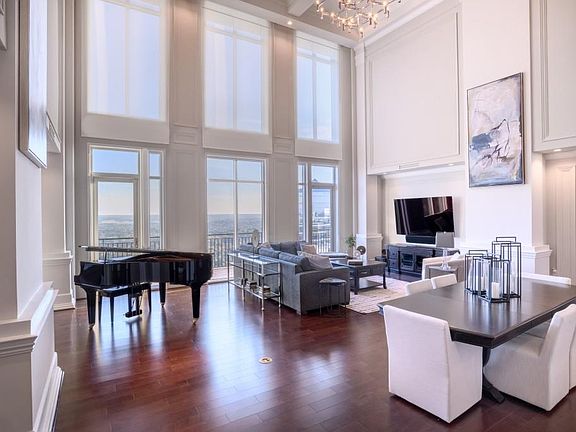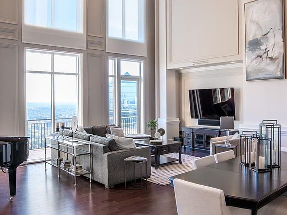 A rare opportunity to own a penthouse of magnificent scale & distinction Enter through the mahogany doors & you're captivated by a wall of glass boasting unobstructed panoramic views of Atlanta Skyline 3,906 sq ft of living space takes in two floors, connected by an elevator Grand living room w palladium windows, soaring coffered ceilings & access to an outdoor balcony Adjoining the great rm is a cozy library Gourmet kit w Wolf stove, wine cooler, & custom cabinetry Spacious owners' suite w spectacular views. Loft w sitting area complimented by Pecky Cypress paneled office. For the ultimate in luxury living, it includes over 1000 sq ft. of outdoor liv space Partially covered area w rooftop kitchen, open area ideal for sun-bathing & stargazing. State-of-the-art Control4 technology for relaxation w master control of music, lights, Lutron shades, & thermostat. Resort-style liv w infinity pool, fitness center, indoor golf range, fireside game rm, pet park, & two guest suites. Additional amenities include 24-hr security, concierge service. Penthouse entitlements include wine locker, 3 deeded parking spaces & storage area. Relax & entertain in privacy & style in this full-service condo.