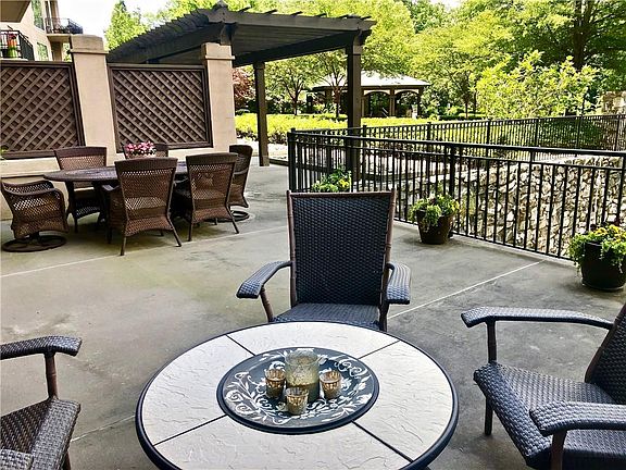 One of a kind floor plan - RARELY AVAILABLE - One of only 3 units in a 156 unit building that has direct access to the garden area, grills, Pavilion with open fireplace & TV, guest suites, party room w/ kitchen & bath and elevators - Largest patio for this plan 17'x 25' - Hard to find storage room #38 included in the price - STORAGE ROOMS ARE DEEDED & SOLD SEPARATELY - Luxurious master bedroom suite - Master's bath has dual vanity , custom shower, and spacious custom-made closet - Fireplace in Living room - Laundry room has custom cabinets for additional storage - Additional bedroom or office with full bath and a closet - Direct access from the unit to the road without using the elevator via gated outdoor stairs, perfect unit for dog owners - Deeded parking spaces 52 & 53 next to elevators - Spectacular infinity pool & spa with panoramic views of Atlanta skyline - Fitness facility - Pet park - Wine cellar - 24/7 concierge & Security - Club room with fireplace and billiard table - Coffee bar - Catering Kitchen - Workshop - Conference room - Library - Massage room - Golf cage - Party room with a kitchen - Beautiful gardens - Cabana with 2 gas grills, ceiling fans, TV and open fireplace - Inside 285 with easy access to all major HWYS - Resort lifestyle in the heart of historic Vinings - Low Cobb taxes!