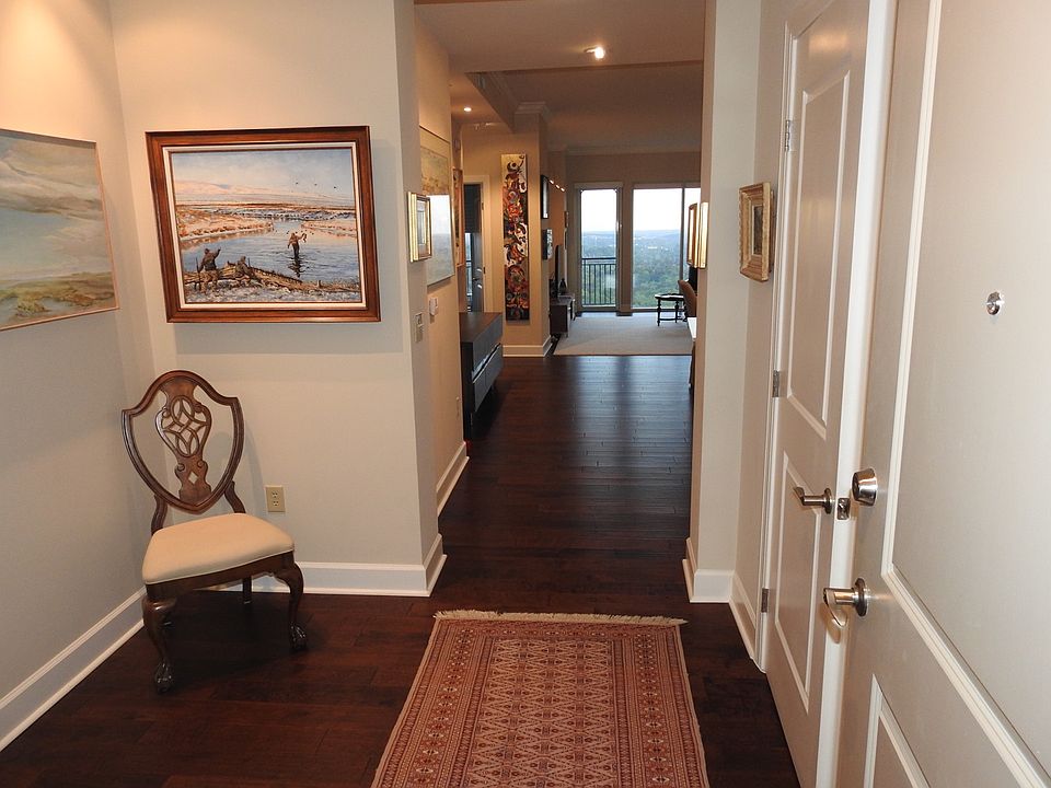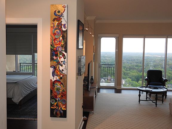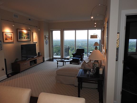 Breathtaking view south of Atlanta's entire skyline. April upgrades to kitchen include high grade quartzite countertop and backsplash, new sink, faucet, disposal and dishwasher. Upgraded hardwood floors and lighting throughout. New ceiling fans and water heater. Remote controlled blinds. Remarkable amenities include infinity edge pool, hot tub, full gym, golf driving room, work shop, fireside library, pool table, grand salon, board room, garden room, fireside pavilion with 2 gas grills, 2 big green eggs, TV and al fresco dining.